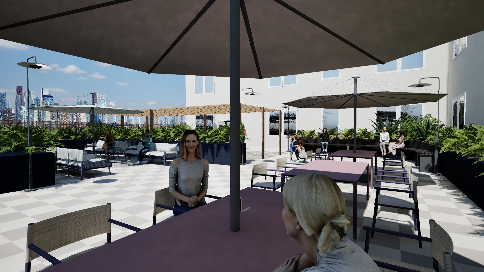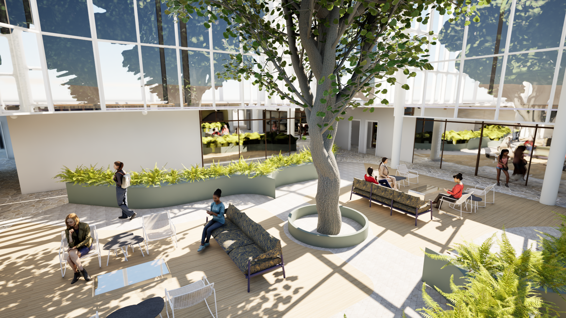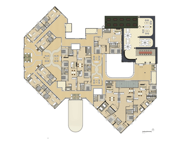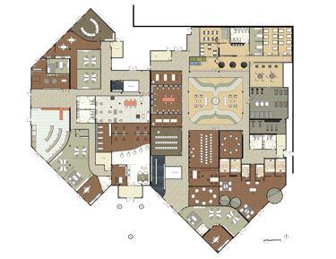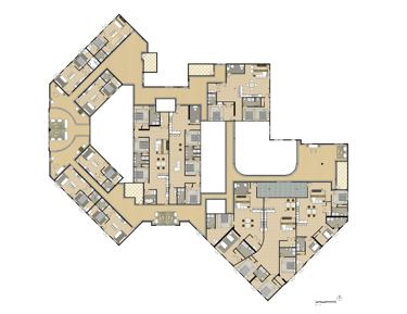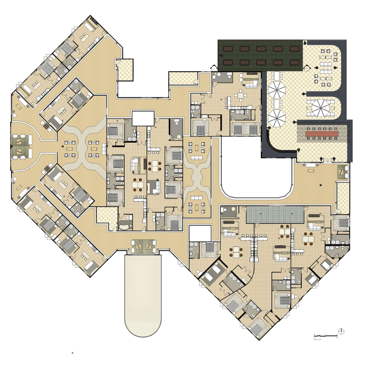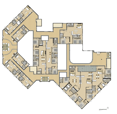 The second and third floors were strictly residential floors with apartment style living. There are also seating areas and open-air courtyard throughout the space. There is also a second-floor outdoor patio.